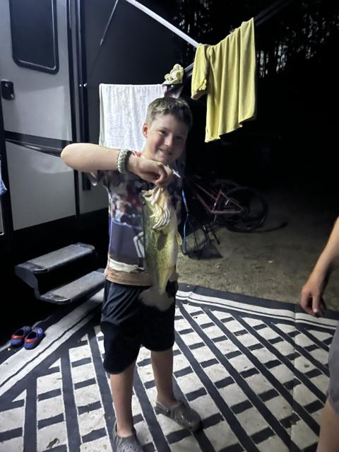 This guy was done fishing over this dam caught a perch reeled it in a big bass came and took it I ran over there a big bass took it and we were lucky we had a net