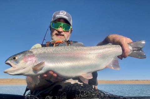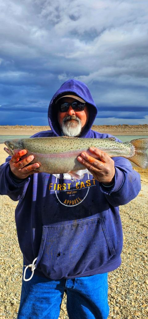 Took a trip north of the border, somewhat expecting the Kokanee spawn to have started. Nope, the water needs to cool another 10 degrees! But the fall trout bite has begun. In typical Wyoming fashion, the wind exceeded the forecast, and I soon found myself paddling in whitecaps. Once I dialed in the depth of the fish, it was on! Got around a dozen rainbows to the net, with some fatties in the mix. Saw several shore anglers but didn’t see much catching, as it’s tough shore conditions with the water level being very low. Didn’t take pics or video during the windiest times, and even skipped photographing some catches because I had to keep a hand on the paddle. Could have kept catching, but after three hours of battling the wind, I was pretty tired. So I packed up and headed to the slightly less windy Twin Buttes, which I’ll cover in my next post. And oh yeah, bought the hat! Happy with it, good quality!
