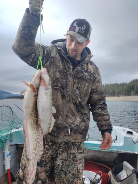 Jigging with a half ounce jig head and a glow in the dark rubber worm topped with real worms. Right on bottom 40 ft of water