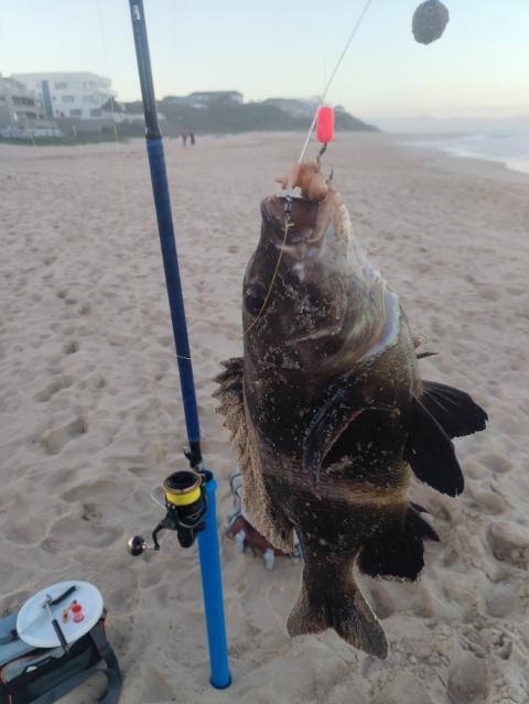 Caught this sea bass on on red bait and alekreukel bait. Low tide behind the rocks