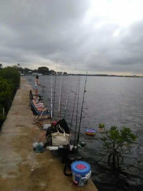 Great fishing spot with 3 different rivers coming together close by (Indian River, PSL river, and a canal). Has a park, a playground, tables, and a river walk which was damaged by a storm so it sits a bit low and gets washed out in high tide. Small marina within a few hundred feet with lots of baitfish. Bottom is a little rough and park closes at 8, but still a great spot with high activity.